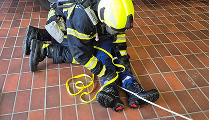 Da bei einem Zimmerbrand die Sicht für die Feuerwehrleute oftmals nahezu null ist, ist es wichtig, immer die Orientierung zu behalten und notfalls sofort wieder zum Ausgang zurückzufinden.