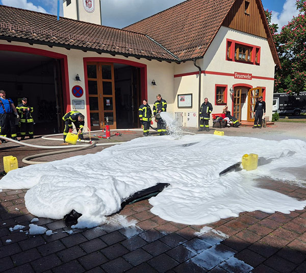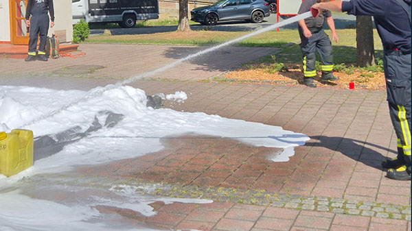 Danach probierten wir noch die verschiedenen Schaumrohre, welche auf unserem Fahrzeug verlastet sind, aus. Nach gründlicher Reinigung des Platzes vor dem Feuerwehrhaus wurde die Übung erfolgreich beendet.