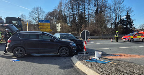 In den Morgenstunden kam es auf der B303, im Kreuzungsbereich KU13, zu einem Verkehrsunfall mit drei PKW.