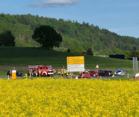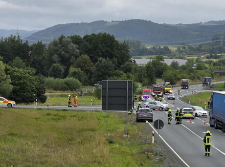Mit einem Stichwort, welches häufiger vorkommt (THL 2, E-Call), wurden wir auf die ehemalige B303 auf Höhe Hummendorf alarmiert.