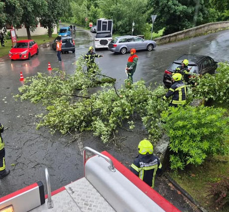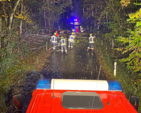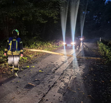 Aufgrund mehrerer umgestürzter Bäume rückten wir heute Morgen nach Gumpersdorf aus.