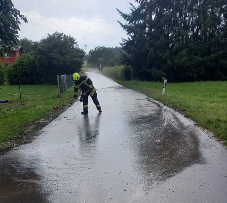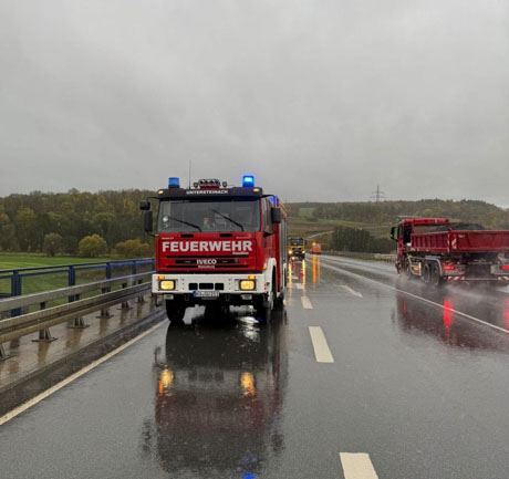 Durch uns wurde der Brandschutz sichergestellt, zusammen mit den anderen Wehren der Verkehr geregelt und anschließend die Straße zusammen mit dem Straßenbaulastträger gereinigt.