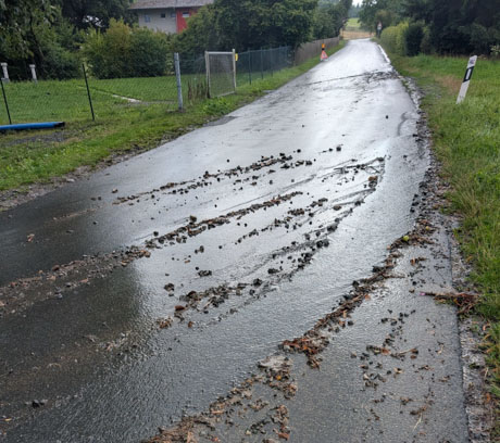 Die Fahrbahn wurde durch die Firma Karolack gereinigt, welche ebenfalls mit einem Bagger die kontaminierte Erde beseitigte.