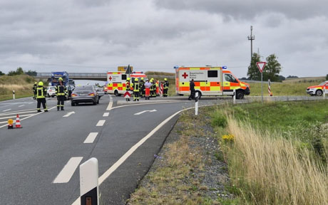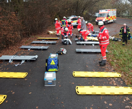 Die Feuerwehr übernahm die Erstversorgung der Patienten, unterstützte das BRK beim Transport der Verletzten und befreite die eingeschlossene Person aus dem PKW.