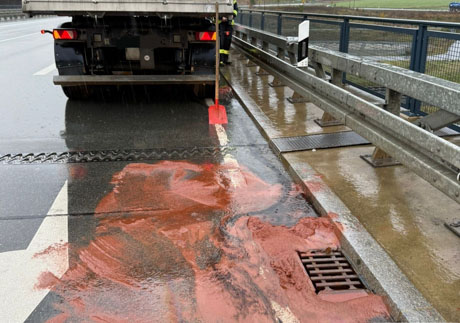 Ein LKW verlor aufgrund eines Defektes Öl, welches in die Kanalisation und angrenzende Grünstreifen lief.